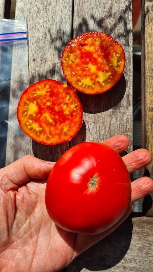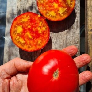 Schöne, alte Sorte aus den USA. Mittelfrüh, je nach Sommer. Die Früchte werden bei mir ca. 300 Gramm, manchmal auch grösser. Süss und saftig, gelb-orange, manchmal marmoriert oder gefleckt, die Farben werden je nach Reife intensiver.