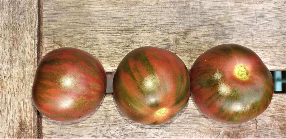 Kleine dunkle süsse Früchte, gestreift, ideal für Balkon und Garten. Braucht Regenschutz oder ein geschütztes Plätzchen.