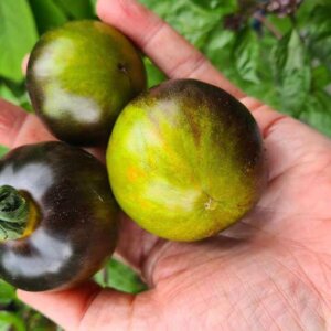 Schöne grünfruchtige Sorte mit spezieller Farbe, der Geschmack wie immer bei solchen Sorten sehr intensiv-tomatig.