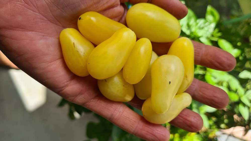 Kleine gelbe Cherrytomate, von einem Kunden erhalten aus Spreitenbach. Eine wirklich tolle gelbe Cherry die sehr gut im Geschmack ist und ausserdem eine gute Konsistenz hat, nicht zu weich!
