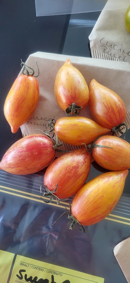 Eine Eiszapfen Sorte, längliche Früchte wie grosse Datteln aber schöner. Schmecken sehr gut und können auch nach der Ernte länger aufbewahrt werden ohne dass sie platzen.